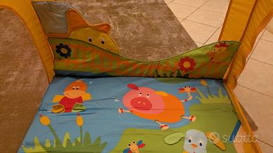 Vendo box quadrato Chicco, colore arancione con tappetino allegro, morbido a tema fattoria.