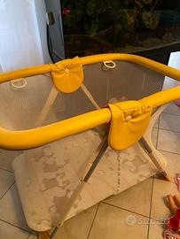 La rete a maglie fitte permette al tuo bambino di vedere il mondo che lo circonda e le quattro maniglie lo aiutano a sollevarsi.