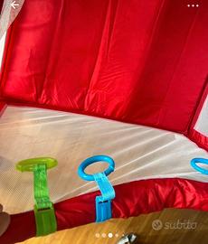 Box ancora in ottime condizioni, comodo e richiudibile. Molto grande 100x100 per dare al bambino più spazio per giocare. Con custodia ideale anche per viaggio. Sotto al tappetino presenta lievi segni di usura come da foto in quanto la base tocca con struttura e si è leggermente usurato.
