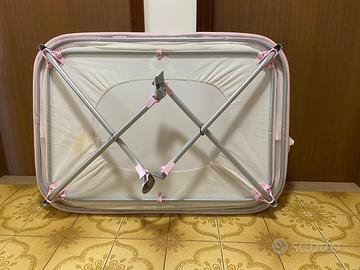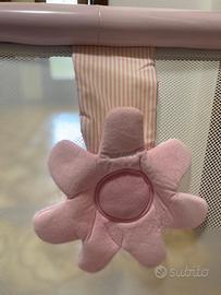 Vendo box rosa Soft & Play Brevi, adatto da 0 a 12 mesi. Il box è un simpatico e sicuro centro attività, con tappeto rimovibile morbido e impreziosito da fiocchetti rosa. È inoltre arricchito ai lati da un coniglietto e da un fiore di peluche.