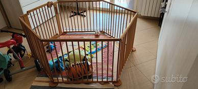 Vendo recinto in legno molto resistente e stabile utilizzato pochissimo, se non come garage per peluches e giochi. Si può modulare in diverse forme. Per maggiori info contattare tramite messaggio