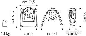 Vendesi sdraietta/balancelle Brevi Althea 2‑in‑1, prodotta in Italia, ideale per neonati fino a circa 9kg. Si può usare sia come altalena elettrica che come transat, grazie alla base removibile. Prodotto di qualità, con controllo elettronico, struttura pieghevole e seduta imbottita.