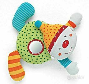 Un soffice tappeto gioco, sfoderabile e lavabile a 30°C, ricco di sonagli, funzioni sonore e morbidi pupazzi per il suo divertimento: un simpatico clown con sonaglini, soffietto musicale, stropiccetti e specchio-gioco, il leoncino e l'elefantino sonori, i divertenti e allegri personaggi del circo e un leone con stropiccetti nella criniera e specchio-gioco nascosto.
