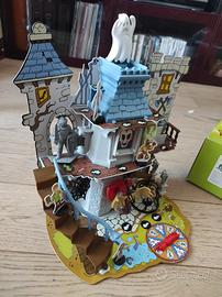 Scooby-Doo e la Mistery Gang stanno investigando sulle inquietanti cose che succedono al castello. Un vecchio castello abitato dai fantasmi, ma è davvero così? Sconfiggi il cattivo attraversando il castello, ma fai attenzione alle imprevedibili trappole disseminate lungo il percorso.Scooby-Doo Brivido al Castello include 7 divertenti trabocchetti da evitare. Un segnalino é un pò rovinato da un lato come da foto.