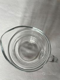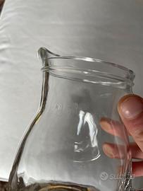 Brocca in vetro per bevande, ottime condizioni a parte piccolo difetto mostrato in foto. Capacità 0,5L.