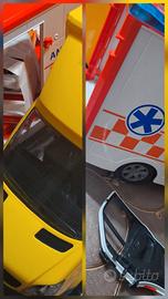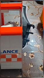 Ambulanza : Discrete condizioni, diversi graffi e segni di usura, alcuni pezzi mancanti o rotti come in foto. La portiera destra non si regge chiusa a causa di un pezzetto rotto. Inclusa una barella, portiera posteriore integra e la portiera laterale rotta. È senza batterie. In regalo 3 macchinine. Per ulteriori foto o informazioni non esitate a contattarmi. Ritiro a mano a Potenza o spedizione tramite V.I.N.T.E.D.