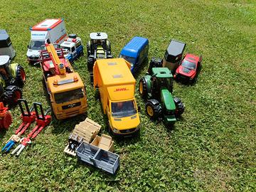 Bruder 9 pezzi in buono stato 1 pezzo leggermente rovinato (Defender)/1 con mancanza pezzo (muletto)/1 rotto in regalo per ricambi( RAM aggiuntivo )