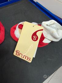 Scarpine per bambini Natalizie che raffigurano babbo Natale numero 18 con cartellino. Sono un regalo sbagliato che non ho potuto cambiare ma purtroppo conservandole si sono ingiallite in alcuni punti come si vede in foto. Prezzo originario 17,90 euro