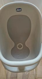 La vaschetta è adatta ai bambini da 0 a 12 mesi grazie a due configurazioni diverse per le quali è sufficiente capovolgere la seduta. La pratica barra a T, posta alla base della vaschetta permette di mantenere il bambino sempre nella giusta posizione, evitando scivolamenti durante il bagnetto. In ottime condizioni. Usata nella seconda casa, quindj usata poco.