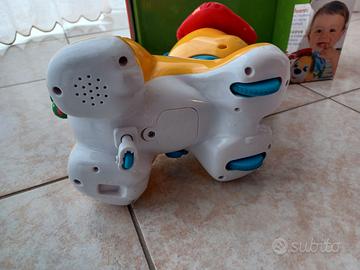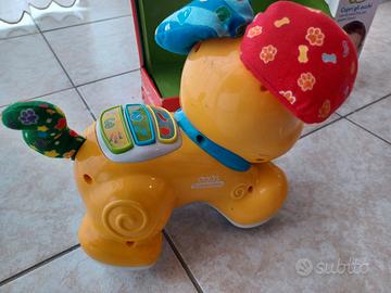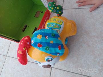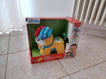 Bubù Cagnolino Cucù è un dolce cagnolino interattivo che include diverse attività di apprendimento adatte all'età prescolare. Premi sui tasti per avere accesso ad attività educative e imparare le prime lettere, i primi numeri e tante divertenti canzoncine sugli amici animali. Per attivare i movimenti del cagnolino, soffia sul suo viso e le sue orecchie si abbassano, attivando il meccanismo Cucù. Quando il cagnolino le rialza, il bambino potrà divertirsi a inseguirlo mentre scappa. Necessita di batterie, non incluse. Bubù Cagnolino Cucù di Clementoni