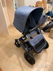 navicella e passeggino bugaboo completo di tutti gli accessori... color jeans,cappotta estiva rossa,zanzariera, proteggi pioggia, sacco invernale e doppia borsa(piccola e grande)... utilizzato poco e ancora in ottimissime condizioni...