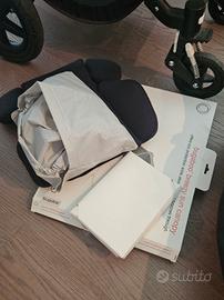 Regalo accessori vari come cappottina ventilata per l'estate (non piu disponibile), telo cerato antipioggia, staffe per seggiolino auto.