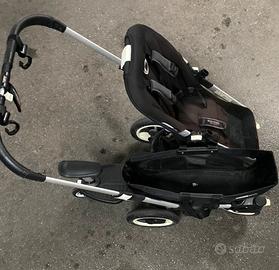 Completo di tutto, due sedute, cappottine, terza seduta su pedana bassa, ottimo anche come passeggino singolo con l’aggiunta della borsa laterale comunque in dotazione. Un buon affare. Un po scolorito dal sole ma ripeto funzionante al 100% include due navicelle e cappottine invernali
