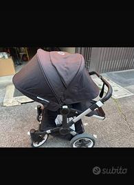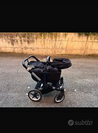 Telaio (nero e alluminio), tessuto carrozzina (con materassino e base di legno), tessuto passeggino, cappotta (tutto nero come nelle foto) e parapioggia.
