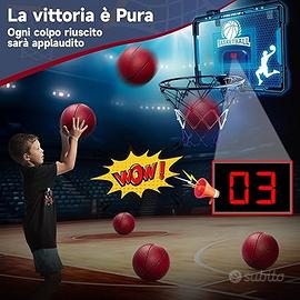 【7 luci che cambiano colore e punteggio elettronico】 -Allegra il tuo punteggio anche al buio! Questo set di canestri da basket per interni è dotato di 7 luci LED che cambiano colore e un tabellone segnapunti elettronico aggiornato che farà il tifo per il tuo bambino e registrerà il punteggio ogni volta che viene segnato un goal. I punteggi vengono calcolati automaticamente e visualizzati in formato digitale, e le fantastiche luci a LED rendono le tue schiacciate visivamente più impressionanti sia di giorno che di notte, dando ad ogni schiacciata un fantastico effetto visivo!