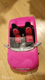 Il veicolo a due posti sfoggia una carrozzeria rosa brillante con dettagli argento e sedili neri presentano cinture di sicurezza e il logo di Barbie per uno stile ancora più esclusivo.