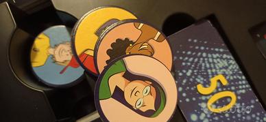 Include un tabellone di gioco, carte delle domande, carte banconota, carte personaggio e una clessidra.