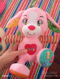 vendo PERFETTAMENTE FUNZIONANTE cagnolino rosa con due zampette che se premute recitano in italiano tutte le lettere e tutti i numeri. Perfettamente funzionante poco usato e con le pile cariche