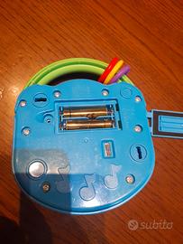 Il giocattolo musicale è come nuovo e in vendita per mancato utilizzo: è perfettamente funzionante, pulito e ottimo per la sua funzione educativa. È funzionante (come si vede dalle luci nella foto e dal video), integro, senza crepe o rotture nelle plastiche: è un ottimo giocattolo per i bambini. Il cagnolino musicale è realizzato in plastica robusta di colore azzurro e multicolore, con una finitura lucida al tatto. Presenta il volto di un simpatico cagnolino con cuffie che si illuminano di verde durante l'uso. È dotato di tre tasti frontali interattivi per insegnare l'alfabeto, i numeri e le forme geometriche attraverso canzoncine e frasi. L’oggetto è di marca Fisher-Price e include una pratica maniglia verde superiore con tre anelli colorati (stile sonaglio) per facilitare la presa del bambino. Sul retro è presente lo scomparto batterie (protetto da vite) e un selettore per regolare il volume su due livelli o spegnere il dispositivo. Funziona con 2 batterie ministilo AAA. Il gioco ha le seguenti dimensioni: altezza circa 14 cm (maniglia inclusa), lunghezza 12 cm e profondità circa 4 cm. Il peso complessivo è di 221 g. Il costo è di 5 €. Possibilità di acquisto con altri oggetti per l'infanzia, per la casa o lampadari. Ritiro in zona Scorzè oppure a Ferrara, oppure spedito con costi di spedizione a carico del compratore. Per informazioni dettagliate scrivere al numero 3400947484 oppure via email a lucavolpato08@gmail.com