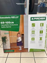 Cancelletto regolabile Kelly 68-105 cm - In metallo verniciato bianco; la barriera di sicurezza è per uso domestico e ha un sistema manuale di chiusura; conforme alla norma EN1930:2011