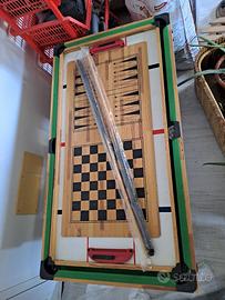 Calcetto apribile che include la dama, backgammon (per questi 2 mancano le pedine), hockey da tavolo e biliardo. No spedizioni