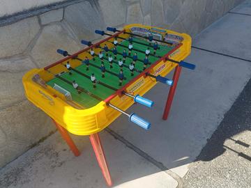 Calcetto calcio balilla da casa per bimbi. Della Dribbling, usato ma ben tenuto e completo di pallina, la base del calcetto è in plastica e le quattro gambe in ferro, il calcetto è smontabile. Manca il segnapunti in una porta (vedi foto 6). Misure calcetto:altezza totale circa 81 cm – lunghezza cm 100 – larghezza cm 55. Assieme al calcetto altre quattro basi in plastica per le gambe. Su richiesta posso mandare altre foto, non faccio spedizione e il trasporto è a carico dell'acquirente. No perdi tempo.