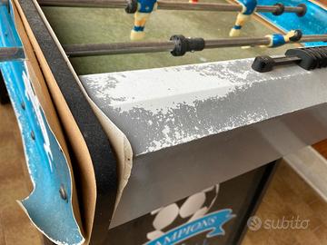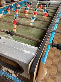 Bellissimo Calcetto Champions funzionante in discrete condizioni, coperture e piano di gioco consumati e leggermente curve dall’umidità ma facilmente riparabili con colla da legno. 2 palline incluse.