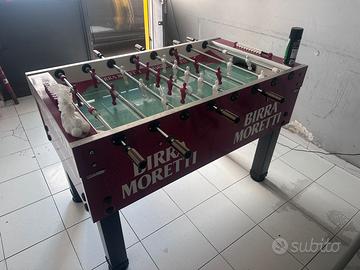 Calcio balilla Bigliardino Biliardino Bigliardo Biliardo Tavolo Calcetto Garlando Usato Revisionato GARLANDO MARACANÀ WHITE - LIMITED EDITION SPONSOR BIRRA MORETTI - PRODOTTO PARI A NUOVO NON TRATTABILE 550€ RITIRO A PIANO TERRA USCITA CASORIA ( NA ) OPPURE POSSIBILITÀ DI TRASPORTO COSTO A PARTE 3 4 8 7 2 8 6 4 6 4 Raffinatezza e robustezza in unico prodotto Chi ha detto che l'eleganza è riservata ai modelli da casa e che un calciobalilla da bar deve essere necessariamente spartano? Maracanà White coniuga la raffinatezza del mobile bianco e grigio spazzolato, dai dettagli color silver anziché neri, con tutte le caratteristiche che hanno reso popolare tra gli gli operatori del settore il gemello Maracanà. Altamente affidabile e facilissimo da gestire, ha campo di gioco che può essere agevolmente pulito perché separabile dalla parte superiore del mobile, mentre il meccanismo interno di scorrimento delle palline, a cui si accede aprendo comodamente il mobile, è composto di parti sostituibili singolarmente. Tutte le parti (comprese quelle in legno) sono assemblate senza l’uso di colle, per permettere facili e veloci sostituzioni di pezzi di ricambio. Il mobile è inoltre dotato di un braccio metallico che ne sostiene la parte superiore quando questa è alzata per consentire l’accesso all’interno, rendendo più agevole il recupero degli incassi e garantendo nel contempo la sicurezza dell’operatore. La possibilità di utilizzare - oltre alla gettoniera meccanica di serie - un sistema di accettazione delle monete elettronico rende possibile soddisfare le esigenze di incasso di qualsiasi tipo di locale. Lunghezzacm. 137 Larghezzacm. 76 Larghezza con aste uscenticm. 120 Larghezza con aste rientranticm. 110 Altezzacm. 90,5 Campo Giococm. 115 x 70,5 PesoKg. 90 Imballaggiocm. 140x 80 x 41