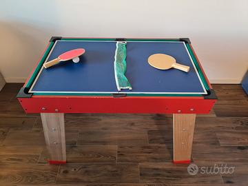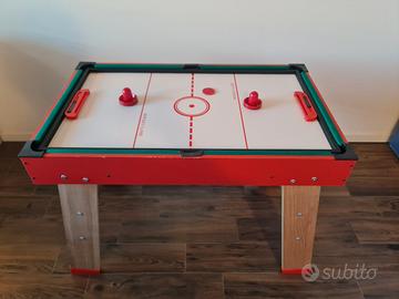 Smoby Powerplay 4 in 1. Calcio balilla, biliardo, ping pong e hockey. Completo di tutti gli accessori. Molto facile il passaggio da un gioco all'altro. Misure massime di ingombro (in versione calcetto) 120 x 90 x 87. Tenuto bene ma con i supporti della rete del ping pong rotti.