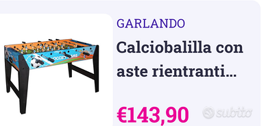 Calcietto soccer game ottime condizioni misure come da foto, solo ritiro a mano presso mio domicilio tel 3808624482