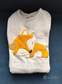 Calda tutina/pigiama (velour) tg 92cm, blukids. 75% cotone, 25%poliestere. Ottimo stato. Apertura a bottoni sul dietro e interno gamba. Ricamo sul davanti con volpe. Maniche lunghe.