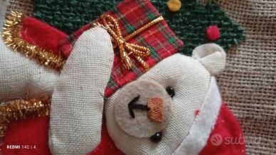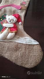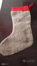 Bellissima calza in iuta e applicazioni in panno.