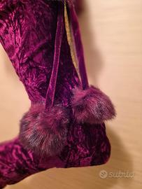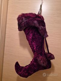 Vendo particolare calza della Befana modello BURGUNDY in velluto rosso e oro con girogamba in pelliccia e fiocchi. Altezza cm. 55 . NUOVA.