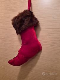 Vendo NUOVA calza della BEFANA in velluto rosso. Lavorazione particolare con ricami alla cosacca. Articolo esclusivo. Altezza cm. 30 con finitura al polpaccio con pelliccia tipo castoro.