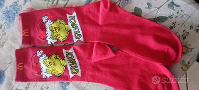 calze bambino Grinch 2 paia calze Grinch rossa e verde taglia unica mai indossate in ottimo stato 20 cm dal tallone alla punta lunghezza totale 36 cm