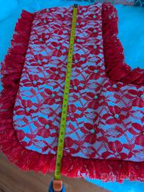 è il tessuto di pizzo rosso decorazioni le perle bianche, tutto interamente cucito a mano ✋💯%
