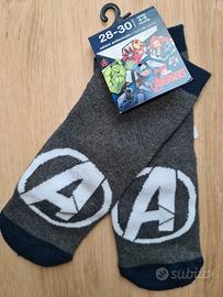 Calzini antiscivolo con stampa Avengers, taglia 28-30. - Design con logo Avengers. - Taglia indicata: 4-6 anni. - Calzini antiscivolo.