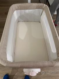 La Culla cullami della Cam ha 8 altezze, apertura sponda anteriore per funzione co-sleeping, posizione antirigurgito, movimento orizzontale della culletta (escursione fino a 16 cm) per compatibilità con tutti i tipi di letti, funzione dondolo, 4 ruote piroettanti di cui 2 con freno, cinghie per il fissaggio al letto.Include: struttura metallica, asta removibile per velo e giostrina, morbido materassino, interno morbido tessuto, finestra in rete.Tessuto sfoderabile e lavabile a mano a 30°.Età di utilizzo:0-9 kg;