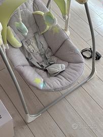 5 melodie, 3 suoni naturali. Volume regolabile. Funzionamento a batterie (non incluse) o con alimentatore incluso. Possibilità di utilizzo come sdraietta. Rivestimento sfoderabile e lavabile a 30°C. Richiudibile