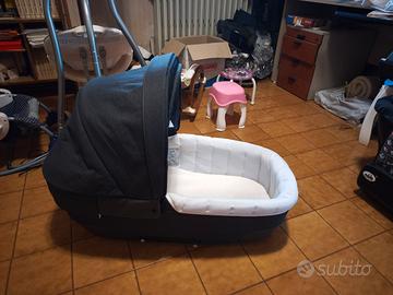 CAM – Trio Dinamico Smart Antracite Con Seggiolino Auto Area0+. Il passeggino è come nuovo, mentre culla e l' ovett sono immacolati, quindi nuovo. nelle foto non sono riuscito a caricare tutti i pezzo e gli accessori che sono compresi nel set. ma se volete posso mandare ulteriori foto in privato. Vi posso assicurare che il prezzo e vantaggioso e il prodotto e in buonissime condizioni. potete chiamarmi senza problemi per qualsiasi info. Descrizione Il sistema modulare perfetto, per andare ovunque. Il trio Dinamico Smart è composto da passeggino, navicella, seggiolino auto area 0+ e borsa. Passeggino: dotato di telaio in alluminio, con morbido maniglione con impugnatura in ecopelle e regolabile in altezza, pesa solo 7,5 kg. Misura da aperto: L 57 – P 87 – H 100 cm e da chiuso: L 57 – P 29 – H 87 cm. Ha una seduta reversibile (fronte mamma 0-12 mesi e fronte strada 12-48 mesi), schienale regolabile in 4 posizioni con una sola mano. Dotato di una pratica chiusura a libro compatta, anche con la seduta in posizione di marcia (peso: 10,3 kg). Ruote posteriori ad ampio raggio con cuscinetti a sfera in metallo facilmente removibili Ruote anteriori piroettanti con sistema di blocco/sblocco, freno sincronizzato, davantino removibile; cinghia a 5 punti, spallacci imbottiti, cappottina estensibile e cestino portaoggetti. Navicella: dotata di sistema di aggancio/sgancio rapido Quicky System. Maniglione dotato di un innovativo sistema di sblocco/blocco ad una sola mano, schienale reclinabile in 4 posizioni, Copertina con alzatina frangivento. Materassino con fondo aerato e base a dondolo. Seggiolino auto: il seggiolino auto Area 0+ può essere utilizzato dai 40 ai 75 cm del tuo bambino. Installazione tramite le cinture dell’auto a 3 punti. Dotato di pratico meccanismo di regolazione in altezza delle cinghie e display laterale di corretta installazione. Compatibile con i sistemi modulari: Fluido e Dinamico. Omologato secondo la normativa I-Size ECE R129. PREZZO TRATTABILE