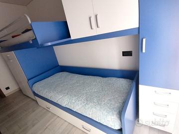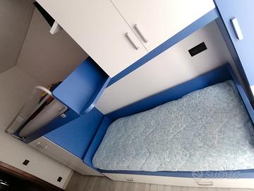 Vendo cameretta 3 posti letto Regalo 1 materasso praticamente nuovo Cameretta Moretti Ampio e profondo armadio Scaletta per 3 letto a cassetto con corridoio a cassettone molto spazioso Lunghezza 4 05 con cassetti staccabili Altezza 258