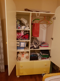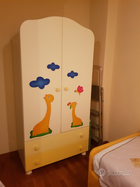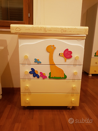 cameretta azur in perfette condizioni fasciatoio con vaschetta interna x il bagnetto lettino con plexiglass nella parte posteriore x monitorare il bambino. Compreso di materasso paracolpi e piumone.In più spazioso armadietto con altri due cassetti sotto le ante. camera completa euro 1000 volendo regalo riduttore x lettino