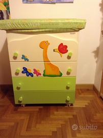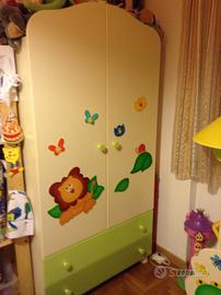 Cameretta AZUR SAVANA completa di letto, armadio, fasciatoio, cassapanca, lampada e appendiabiti.