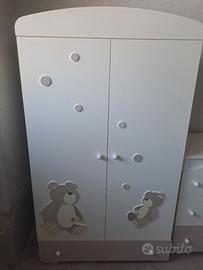 vendo cameretta x bambino o bambina, l armadio e il fasciatoio sono come nuovi , il lettino invece non è perfetto. Da nuova l ho acquistata da mamma orsa a cuneo, quindi un buon prodotto .ritiro sul posto. no spedizione