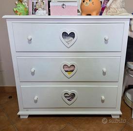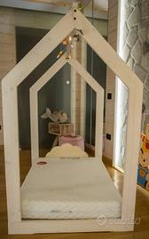 Vendo cameretta da bambina/o composta dai seguenti componenti: - Lettino Montessori Home L'arte dei sogni (- Lunghezza 160 cm, altezza 144,5 cm e profondità 80 cm) (260€) - Scrivalibreria con sediolina L'arte dei sogni (150€) - Cassettiera Maison Du Munde (110€) - Comodino Maison Du Munde (60€) Trovate sotto la descrizione del lettino e della scrivalibreria Vendo anche singolarmente Descrizione Lettino Montessori Ogni lettino montessoriano è realizzato a mano con legno di abete massello di altissima qualità lavorato in maniera tale da rendere la struttura stabile e confortevole. Tutte le superfici sono lisce e senza nodi affinché non ci siano schegge che potrebbero ferire il bambino. La rete è stata creata con apposite feritoie in modo da aumentare la flessibilità senza però ridurre la robustezza. Tutti i nostri lettini sono stati testati con un peso di 80 kg. Descrizione Scrivalibreria con sediolina Una scrivania/libreria 2 in 1 pensata per le attività del tuo bambino. Realizzata in legno multistrato di pioppo è il complemento d'arredo ideale per ogni tipologia di cameretta. E' disponibile in due varianti di colore: bianca e color legno naturale. La finitura della scrivalibreria bianca non è laccata, nonostante il materiale di ottima qualità, lo stesso non si presta per essere laccato quindi il colore finale è un bianco venato. Come tutto l'arredo montessoriano anche la scrivalibreria è a misura di bambino in quanto può in autonomia riporre i propri libri e i propri giocattoli. E' dotata di un banco estraibile in modo da permettergli di dedicarsi alle proprie attività creative, inoltre è pensata per ricreare nella propria casa un ambiente didattico indispensabile per ogni bambino. Ogni scrivalibreria è dotata di una graziosa sediolina