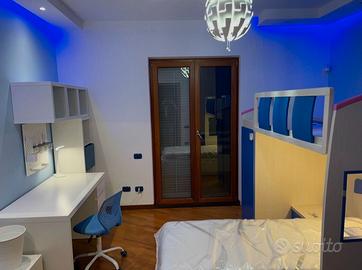 Vendo cameretta a soppalco con scale di cassetti e corridoio di accesso letto superiore provvisto di botole con tantissimo spazio per stivaggio. 2 letti con rete e armadio di sostegno. Consultare le misure da foto. Disponibile per ogni chiarimento ma non perditempo.