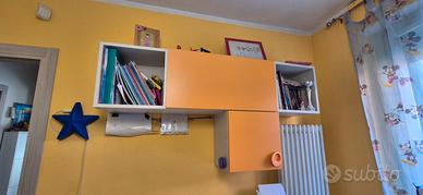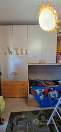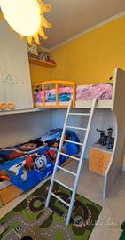 Vendo cameretta bambini in buono stato, composta da: - due letti con struttura a ponte e armadio; - una scaletta; -una scrivania; - una mensola; - un comodino; - una libreria; - due materassi. Alcune parti hanno bisogno di manutenzione, ma con un po' di colla, e' tutto risolvibile. Lo smontaggio e il ritiro sono a carico dell' acquirente. Serietà e no perditempo. Grazie