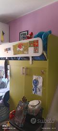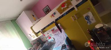 camera ragazzi doppio colore, verde / Lilla letto a castello con scala con cassetti contenitori nell armadio verde presenti ripiani e bastoni per appendere capi(profondità 1 mt) armadio Lilla solo per capi appesi lunghezza totale 3,50 altezza 2,60 scrivania e materassi non inclusi