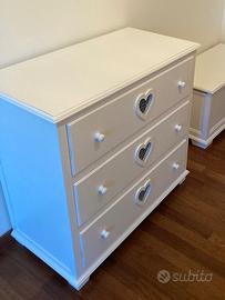 CAMERETTA COMPLETA BAMBINI Vendo cameretta per bambini in legno bianco, stile romantico con dettagli a cuore, ideale per cameretta bambina. Composta da: - Armadio a un’anta con ripiani e 2 cassetti → 250 € - Cassettiera con 3 ampi cassetti → 150 € - Letto Montessori con rete in legno → 250 € 👉 Prezzo per tutto il set: 550 € (trattabili) Mobili in ottime condizioni, già montati e pronti all’uso. Colore bianco, facilmente abbinabili a qualsiasi arredamento. 📏 Ideali per bambini piccoli 📍 Ritiro a mano (zona da concordare) Possibilità di acquisto anche separato. Contattami per informazioni o altre foto 😊