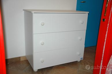 Cameretta completa e praticamente nuova della Pali. 1 lettino con le sbarre ed altezza regolabile bianco 2 coperta-copriletto come da foto, 3 materasso di ottima qualità, 4 mobile fasciatoio con 3 ampi cassetti tutto bianco, 5 armadio bianco con un ampio cassetto e due ante con ripiani ed appendi abiti. Completo di istruzioni per il montaggio e viti. Ritirabile presso il venditore
